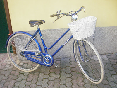 Here's my bicycle (given to me by the vice principal), aka "la bici" (BEE-chee.) I've named her Beech for short. She's an old beech, as you can see. And a tough beech, too. I don't have a proper lock for this beech at the moment (just the one that locks the back tire), which isn't a good thing because Italians tend to have sticky hands. So sometimes, when I come back from Milan on the train and go to the parking lot to ride my bike back home, I get a little worried and suddenly ask myself "Oh no, where's mah beech at, yo?!" Hrhr.